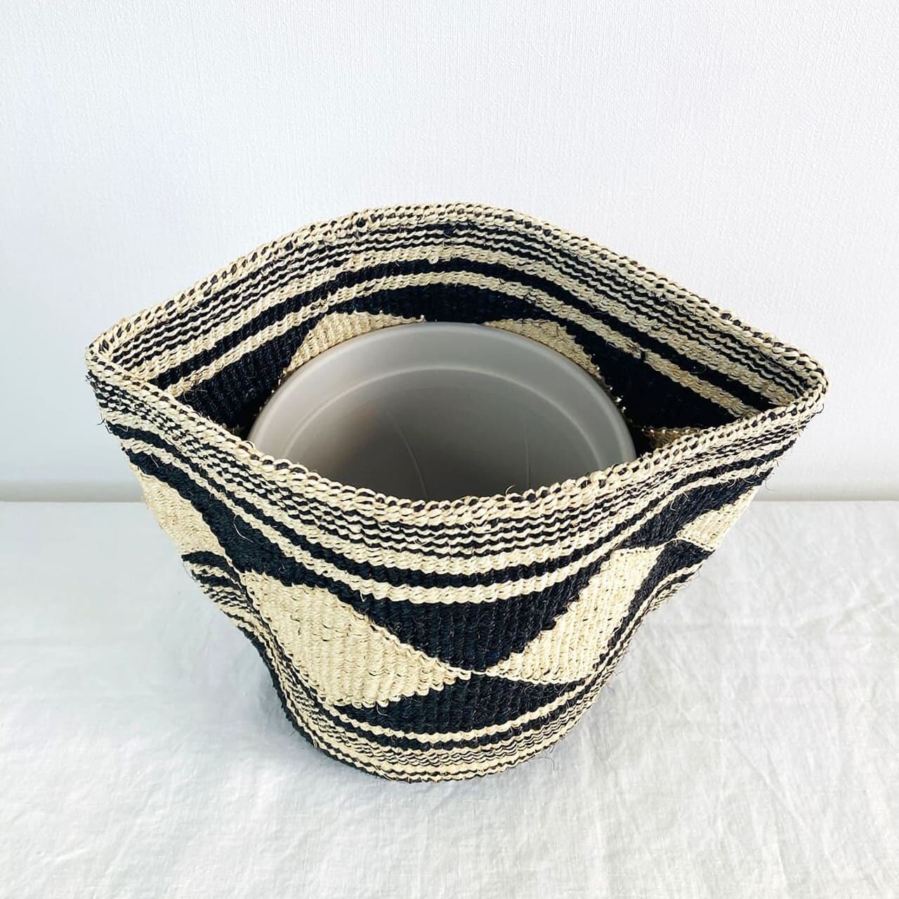 円柱バケツ型サイザルバスケットの伝統柄タイプです。