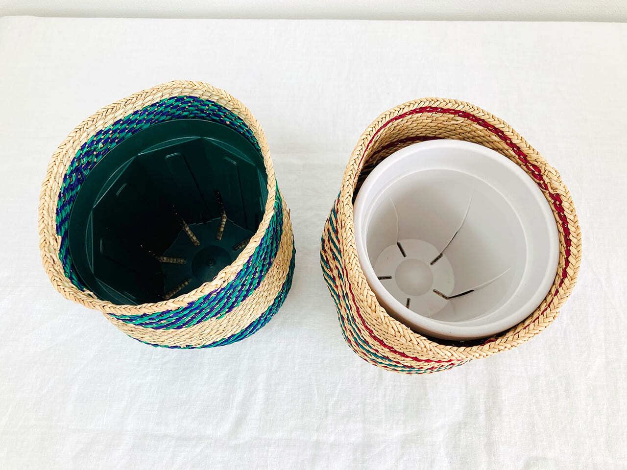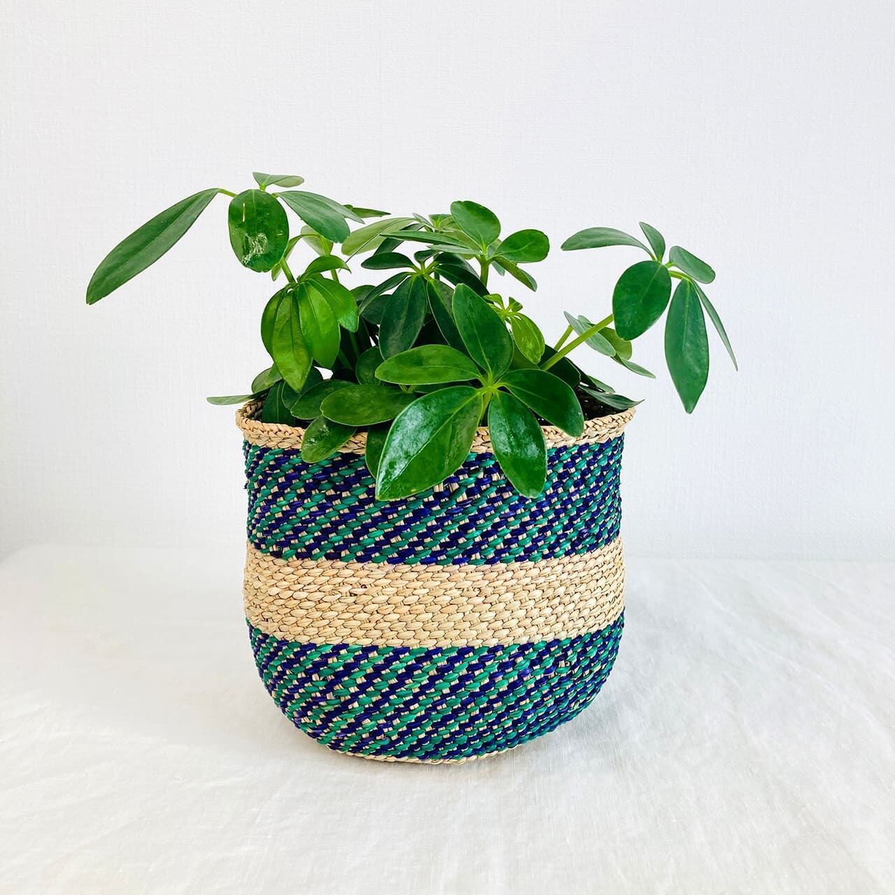 タンザニア、イリンガ地方で地元に自生する水草で編んだかごは世界的にも有名です。カラフルな楽しい色柄のかごです。