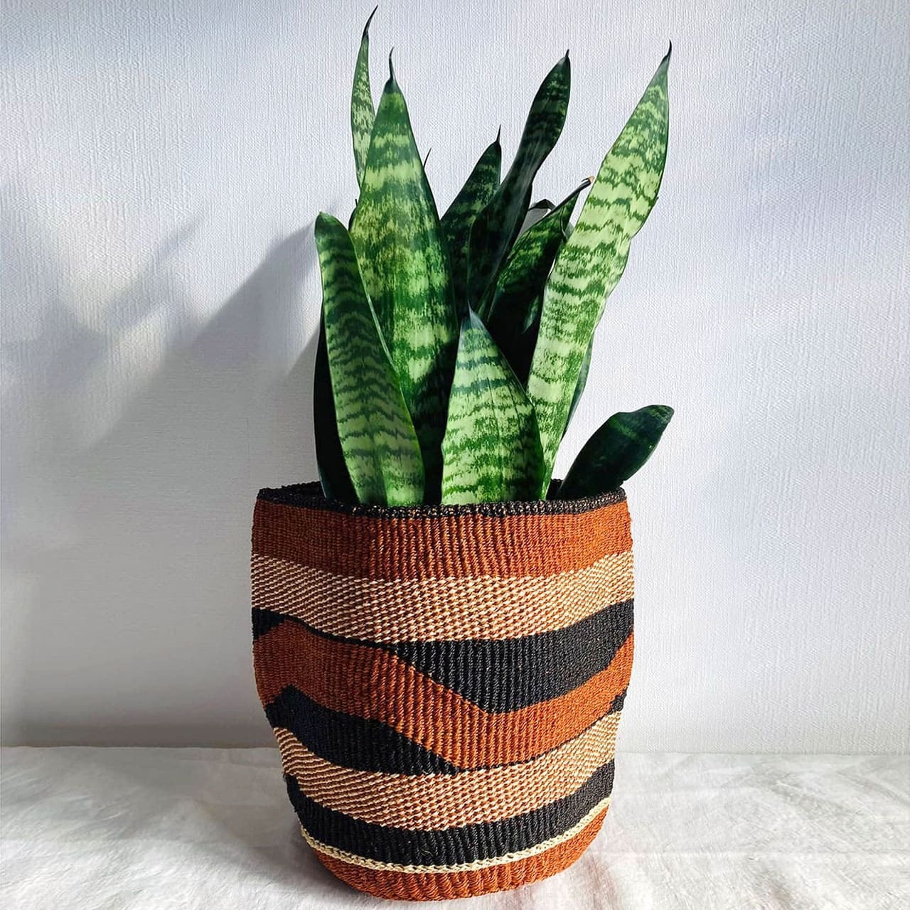 アフリカの伝統柄がとても素敵な鉢カバーです。